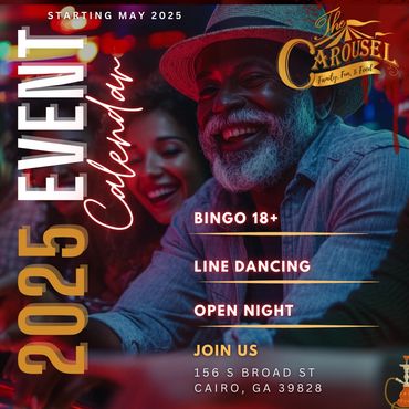 Located in the heart of downtown Cairo, Georgia, The Carousel is a family-friendly dining and event destination committed to creating a vibrant space for connection, celebration, and community. From weekday lunches and weekend entertainment to annual festivals and vendor markets, we offer more than just great food, we’re a hub for joyful moments, cultural expression, and local economic growth.
